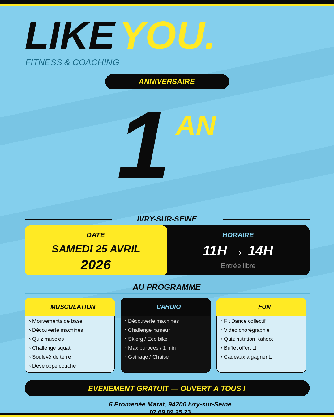 C’est officiel — Like You Fitness Ivry souffle sa première bougie et on veut célébrer ça avec toi ! 🕯️💪